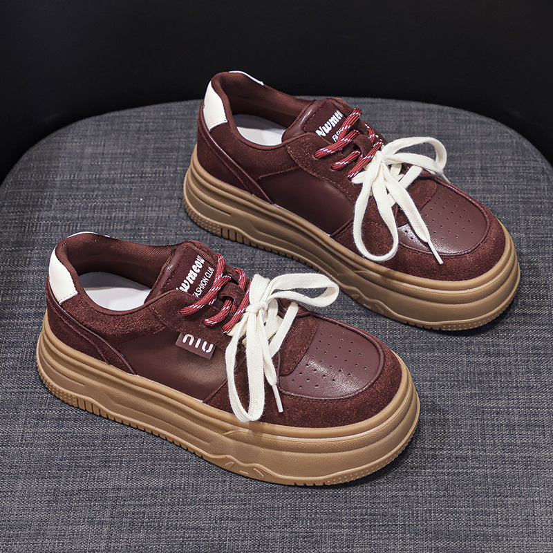 Women's White Korean Height Increasing Sports Leopard Sneakers