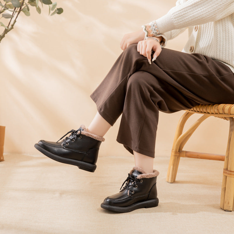 Women's Winter Genuine Flat Round Toe Thickened Snow Boots